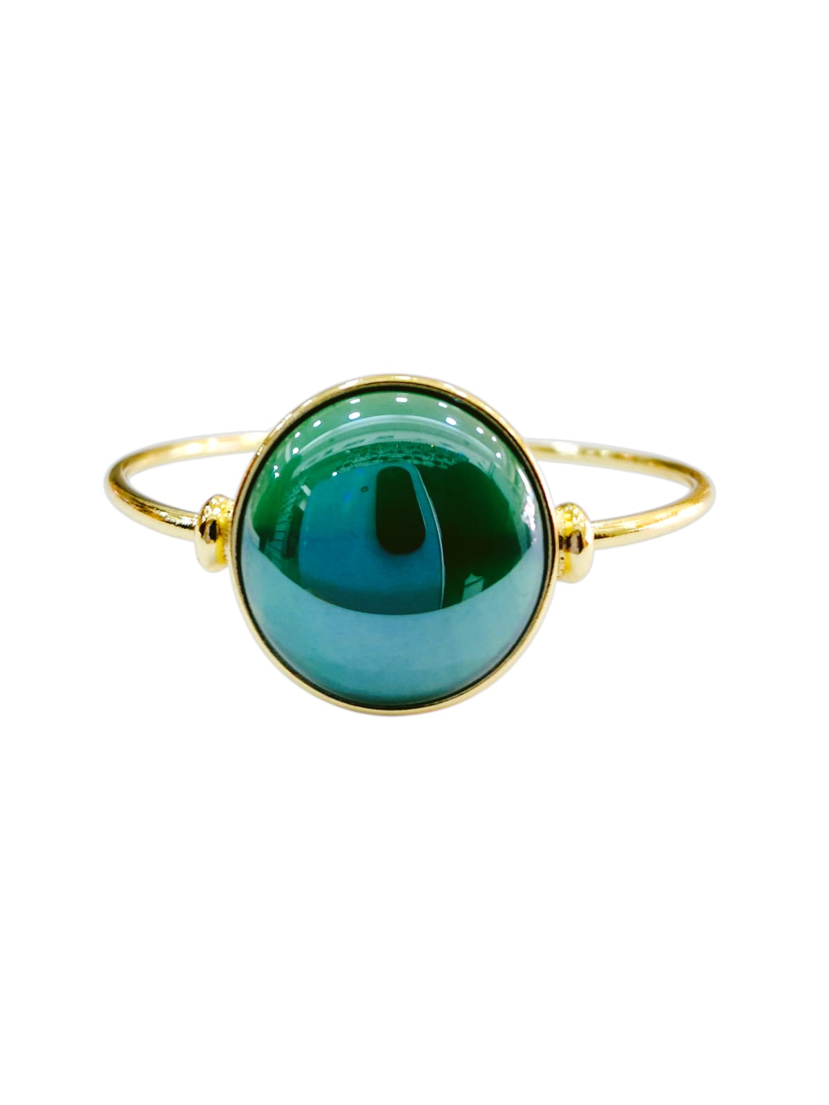Caracteristica - Fechamento do Bracelete - Dois Pontos de fechamento de Pedra a. verde perolada .
