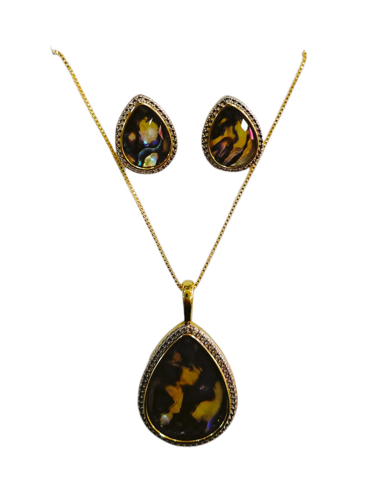 Conjunto Semijoia Pedra de abalone.