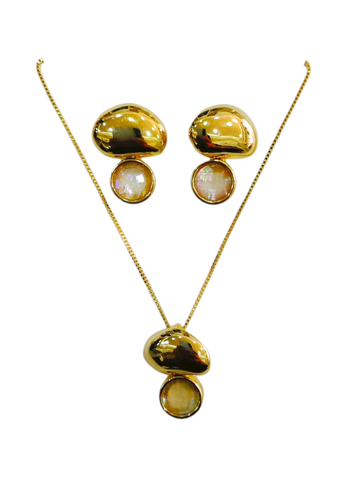 Contendo Par de Brinco com taraxas, colar com pingente de pérola.