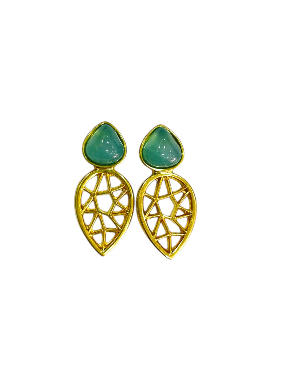 Brinco Folhado á Ouro em Pedra Natural Ágata Azul Céu
