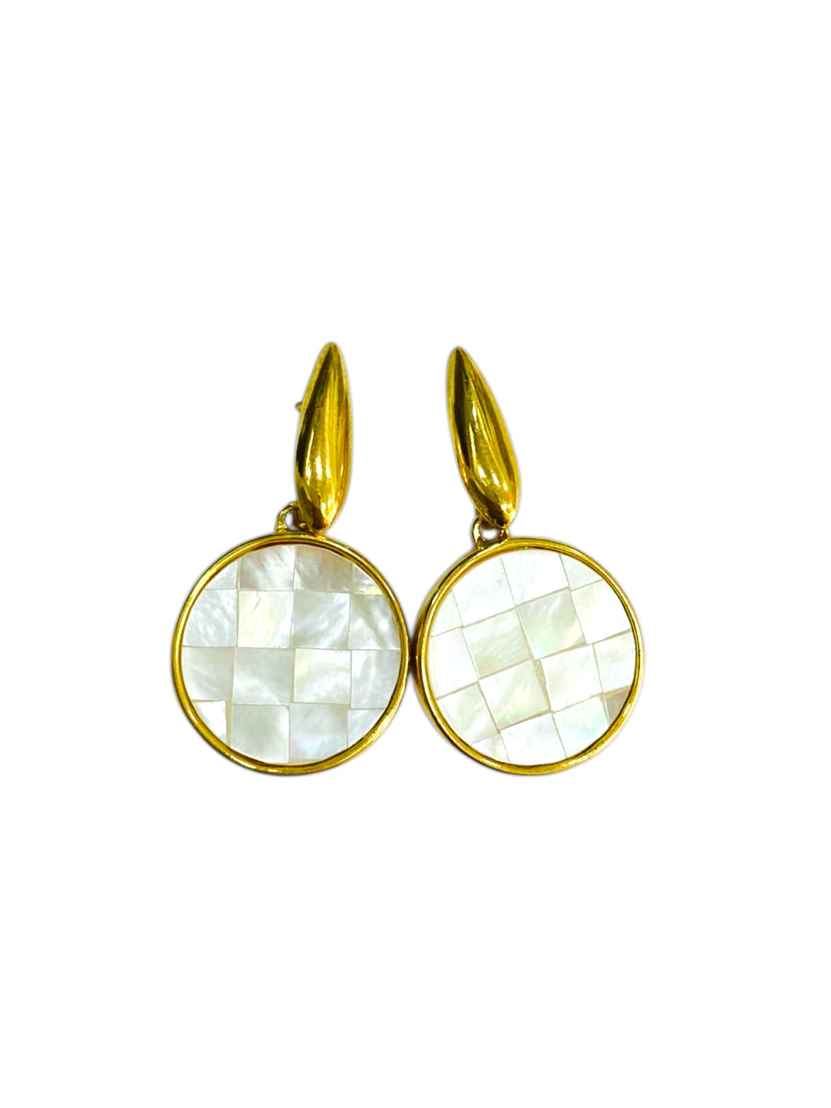 Brinco Folhado á Ouro com Pedra Natural Madrepérola em Mosaico