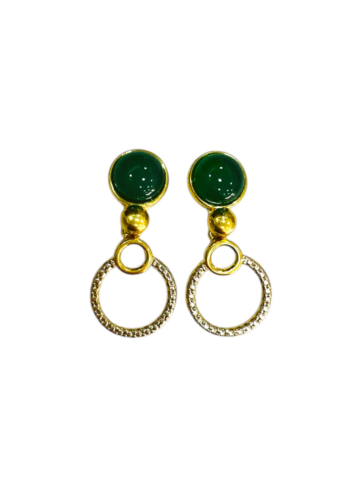 Brinco Folhado á Ouro com Pedra Natural Ágata Verde