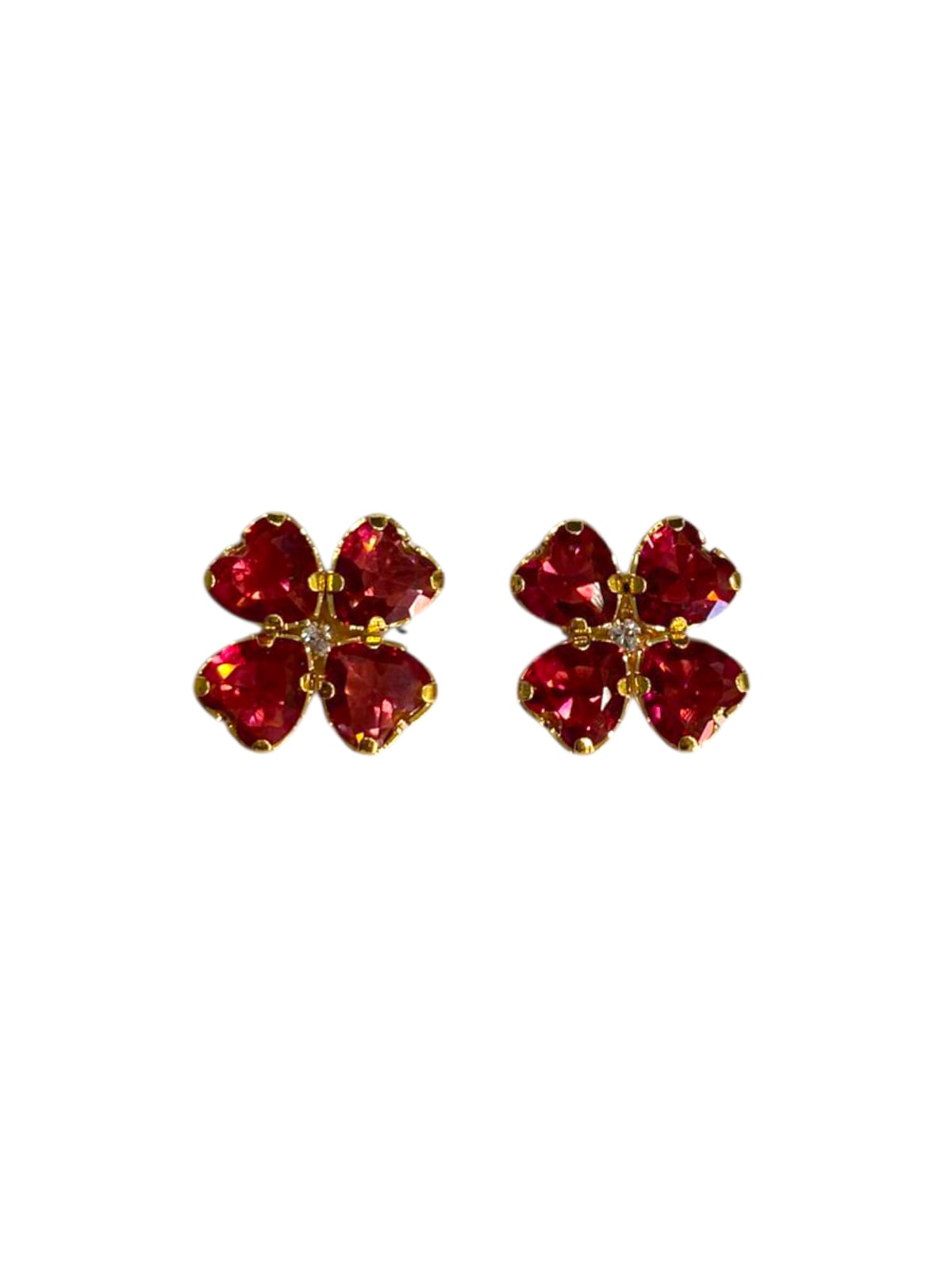 Brinco Folhado á Ouro com Pedra Zircônia Vermelha