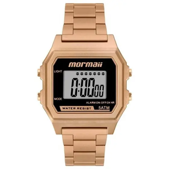 Kit Relógio Digital Mormaii Vintage com Pulseira MOJH02ABP/K7D. Vamos conhecer um pouco mais sobre o produto? Possui mecanismo Digital, a pulseira é na cor Rosé, fabricada em Aço, com 23 cm de comprimento e possui Fecho Dobrável com Dois Botões. A Caixa (peça onde fica o mostrador) é fabricada em Poliuretano, possui fundo do tipo Parafusada, mede 3,6 cm Larg x 3,8 cm Alt, sem considerar a coroa, e 1,2 cm de espessura, o que é considerado tamanho Médio para relógios do gênero Unissex. O Kit Relógio Digital Mormaii Vintage com Pulseira MOJH02ABP/K7D tem nível de resistência à água especificado em 5 ATM. Com relação as funções adicionais do relógio: possui Calendário Digital, Cronômetro Digital, Um Alarme Diário, Aviso de Hora Cheia (Função Chime) e Iluminação de Fundo. É Fabricado por Technos da Amazonia Indústria e Comércio. CNPJ: 04628426/0001-45 e tem Garantia de 1 Ano com o Fornecedor.